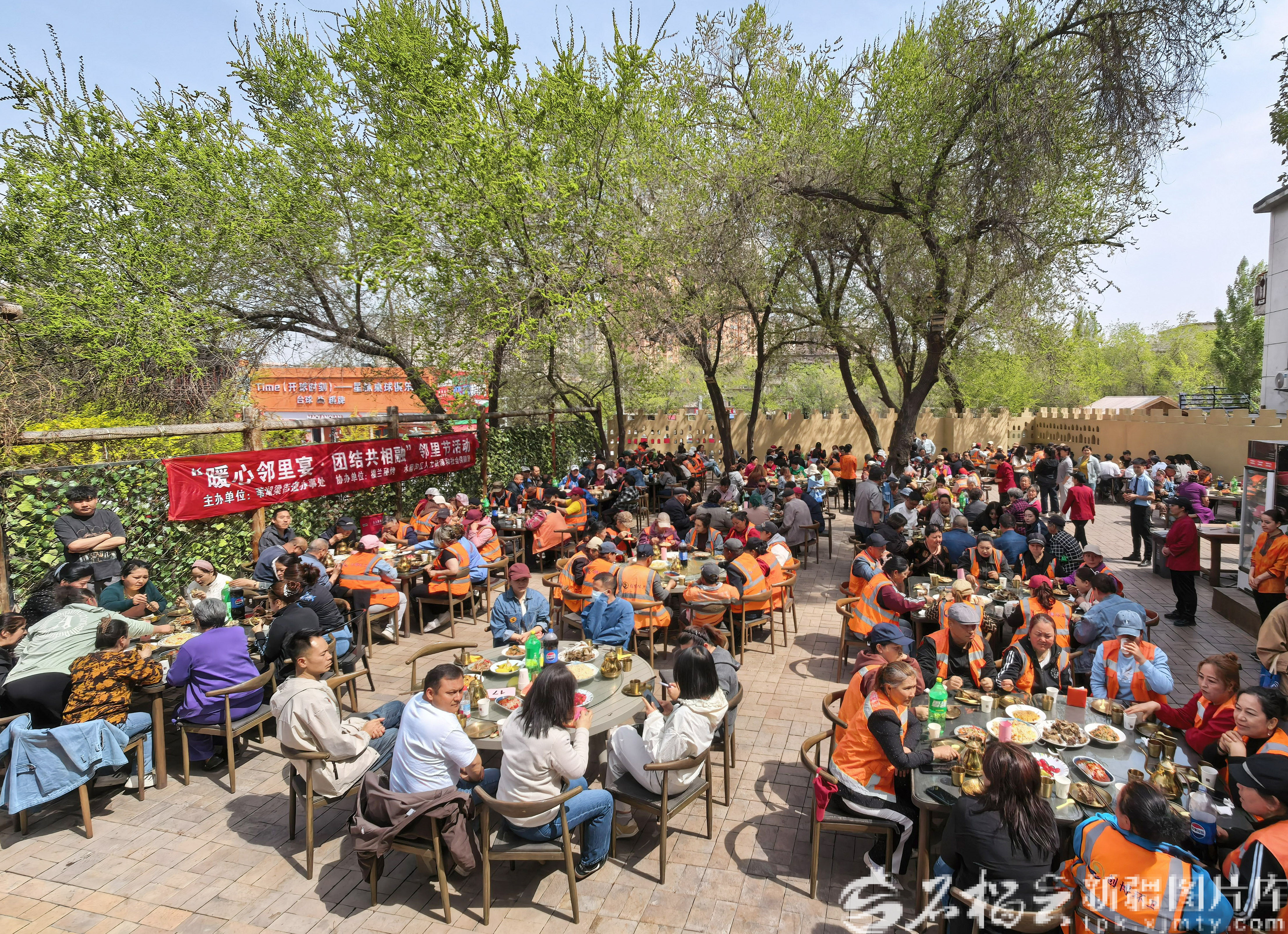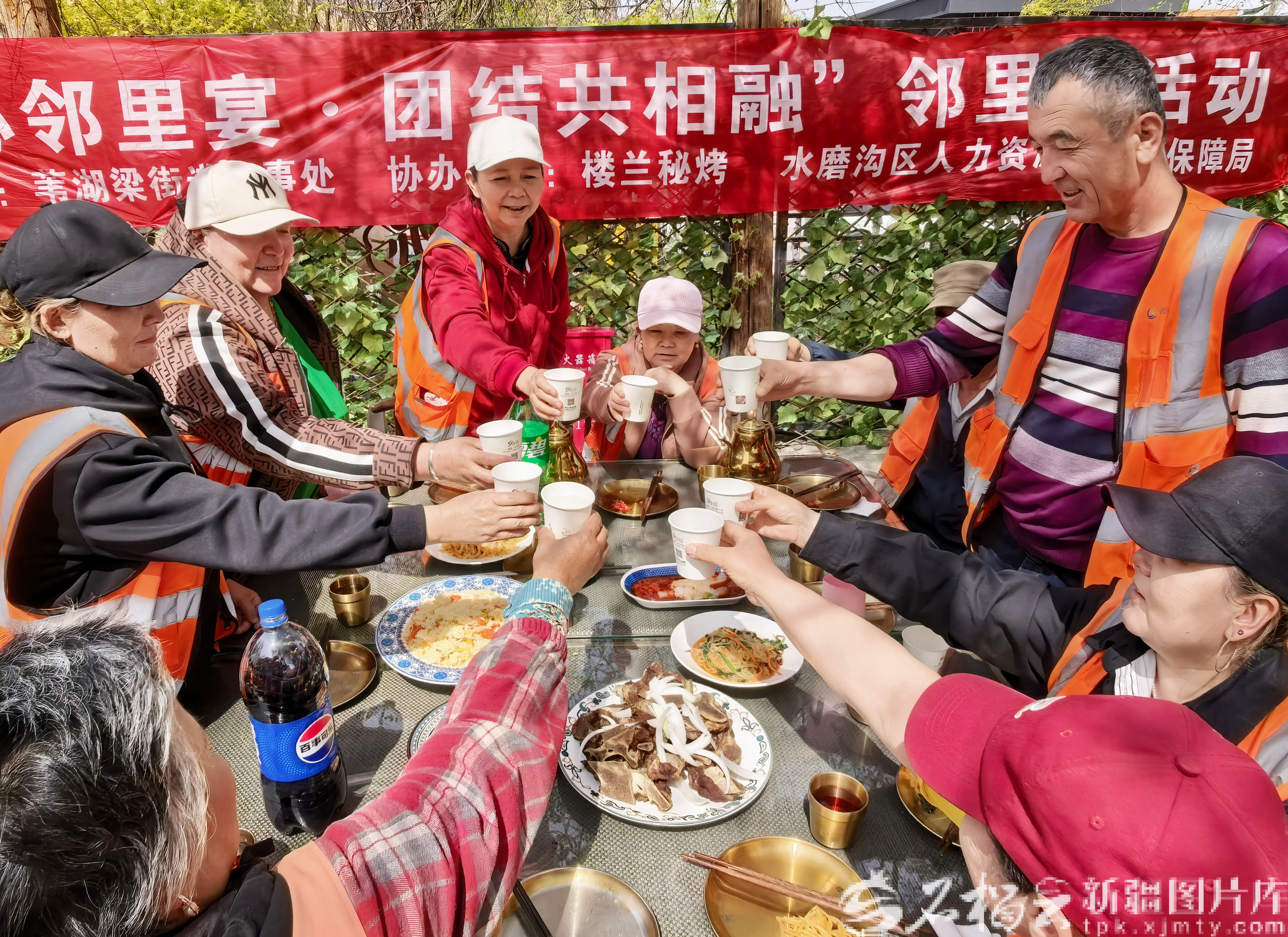 石榴云/新疆日报讯(记者 李雄心摄影报道)4月16日,乌鲁木齐市水磨沟区苇湖梁街道举办“暖心邻里宴·团结共相融”邻里节主题活动。活动邀请环卫工人、快递骑手、小区保安、社区居民欢聚一堂,共赴邻里之约。