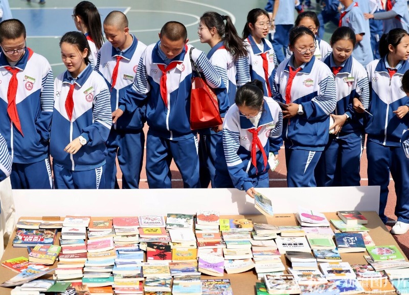 在以班级为单位的旧书置换区,学生们纷纷带来闲置的课外读物,通过交换让好书“漂流”起来。一本本旧书找到新主人,既传递了环保理念,也在分享中增进了同学间的友谊。