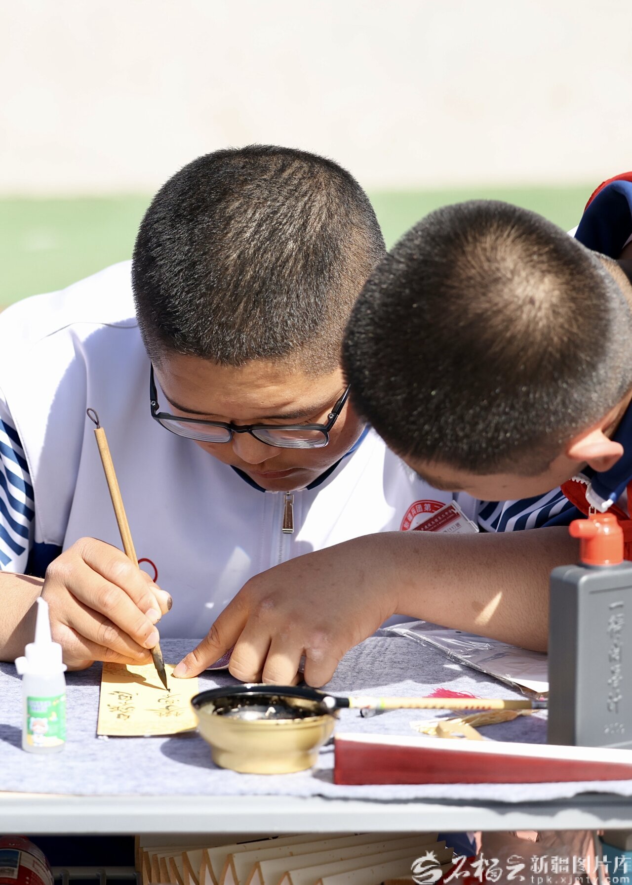 4月23日,一名同学正在写书签。