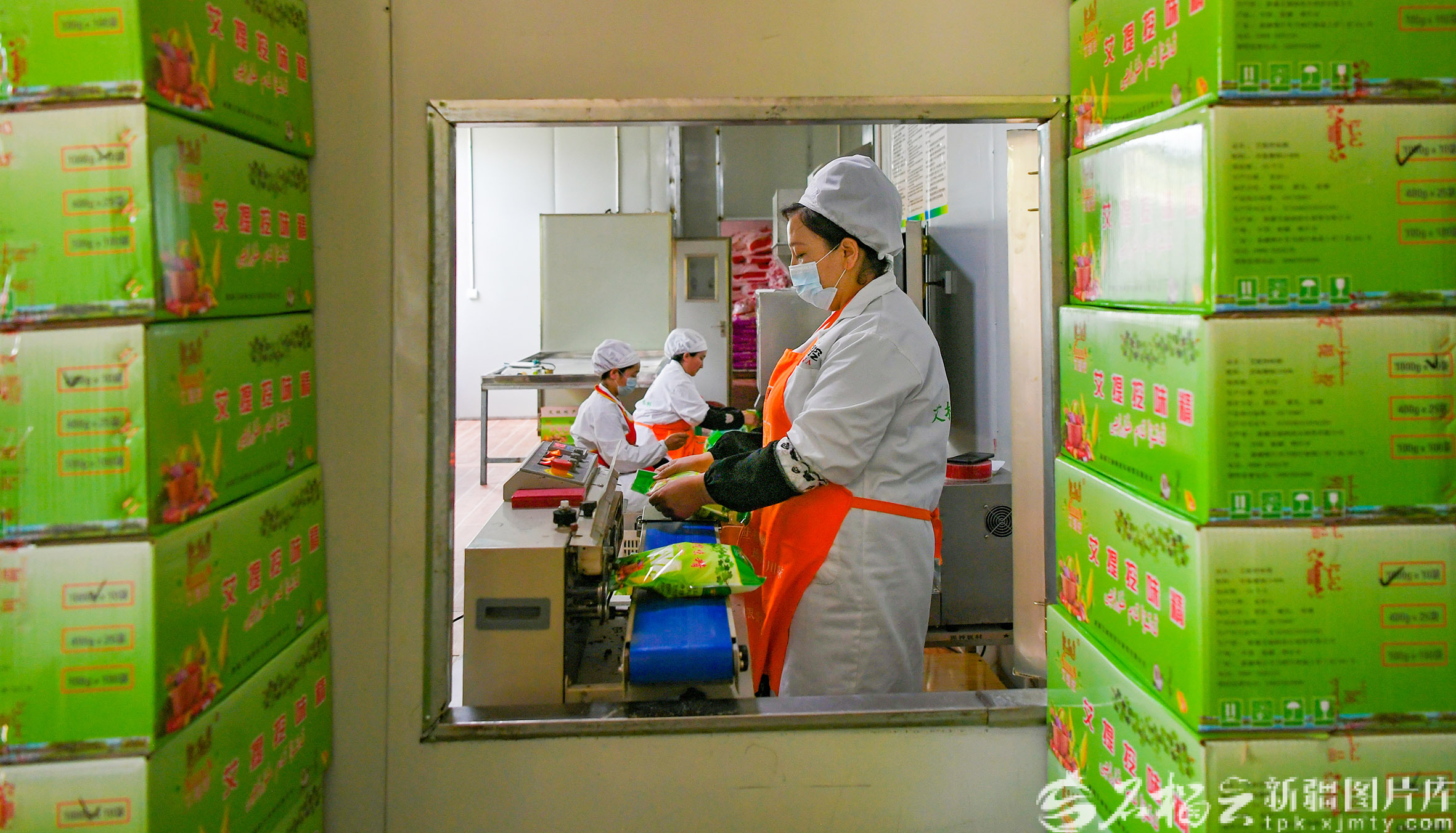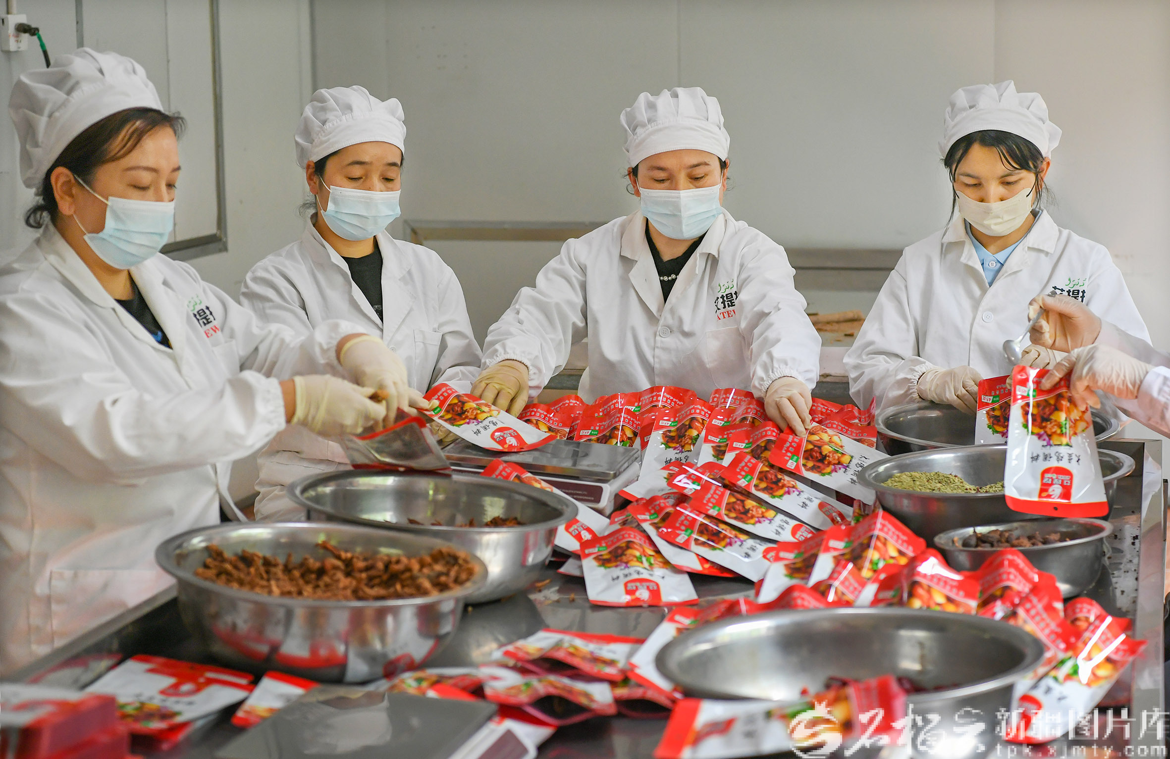 4月27日,员工在调料加工厂封装调味产品。
