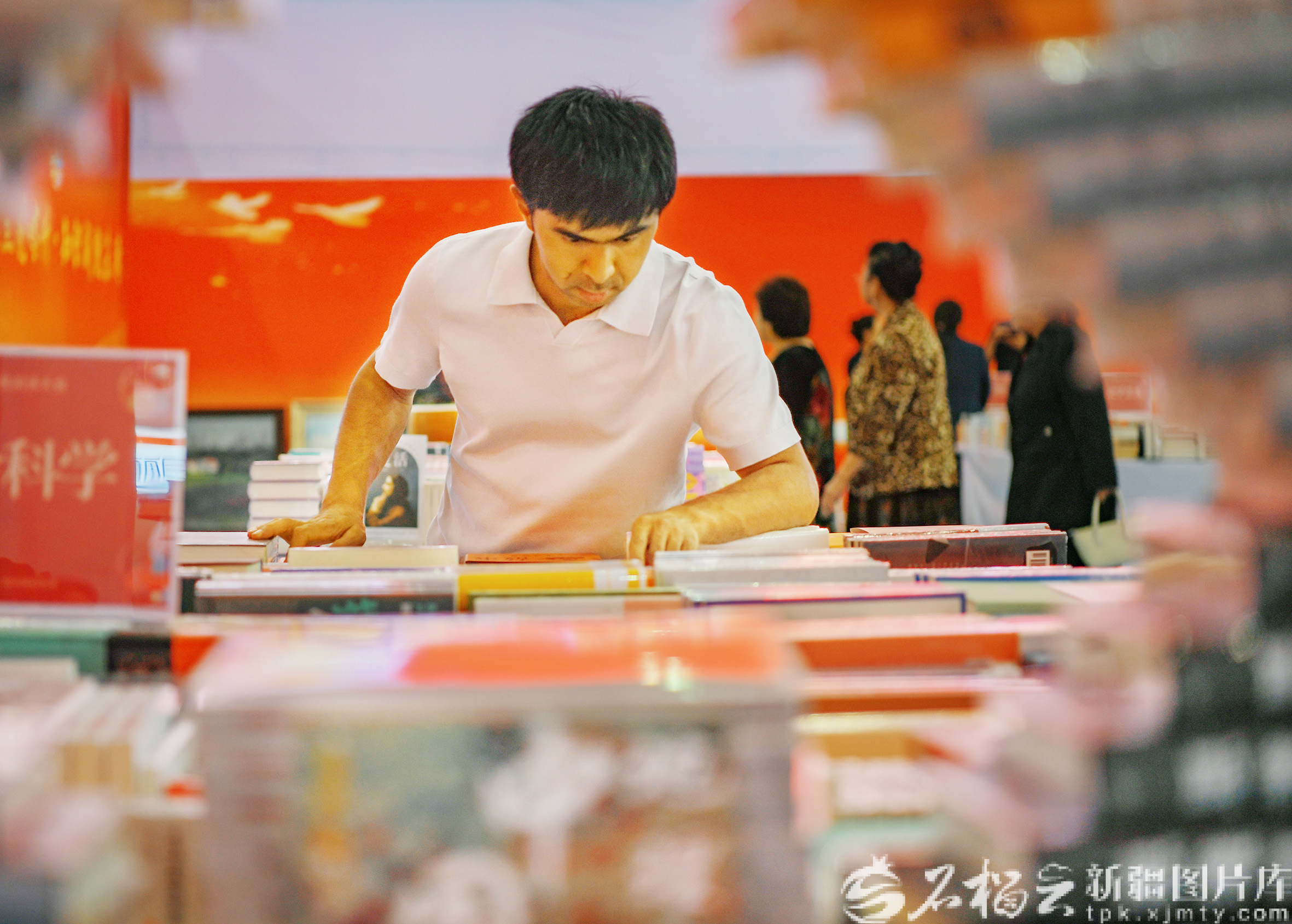 4月26日,努尔买买提·则亚吾东在喀什新华书店挑选书籍。