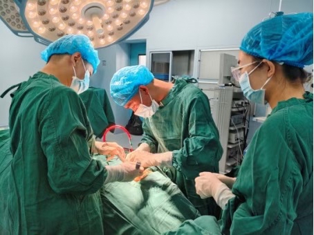 近日,在精河县人民医院,湖北省援疆医生孙福星(中)为患者实施肿瘤切除手术。宋海旭 摄