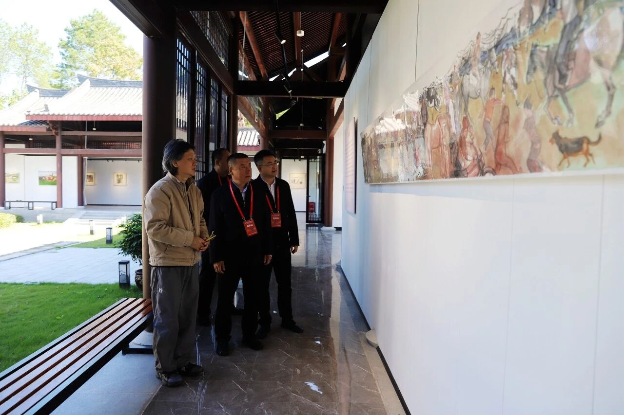 茶博会期间,木垒县委宣传部与南平市美术家协会联合举办了“武夷天山行”采风作品展,代表团一行专程前往武夷艺术研究院参观展览。此次作品展展出了南平艺术家赴木垒采风创作的50余幅精品画作,生动再现了木垒的自然风光和民俗风情。