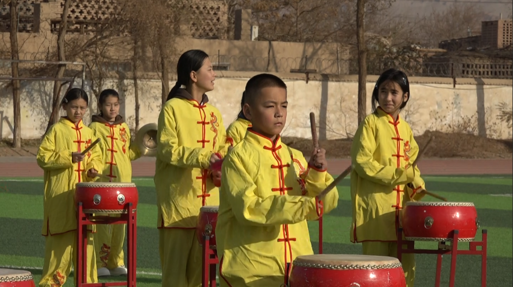 火焰山镇中学五年级学生马力克·艾克然木说:“我们学校的课外活动有很多,我在课余时间参加了威风锣鼓队,威风锣鼓让我更有气势,更加自信。”