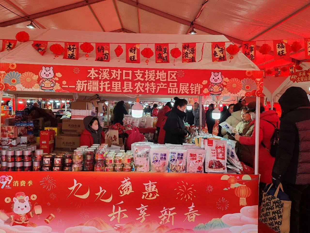 近日,2026年本溪市“骏马迎春”年货节暨商旅融合促消费活动在银亿大苹果广场拉开帷幕。活动期间,专门设立的新疆托里县名特优产品展销区备受关注,成为现场人气亮点。这是本溪市援疆工作队连续第三年组织托里特色农产品走进本溪年货节,也是深化产业援疆、促进消费帮扶的具体举措。