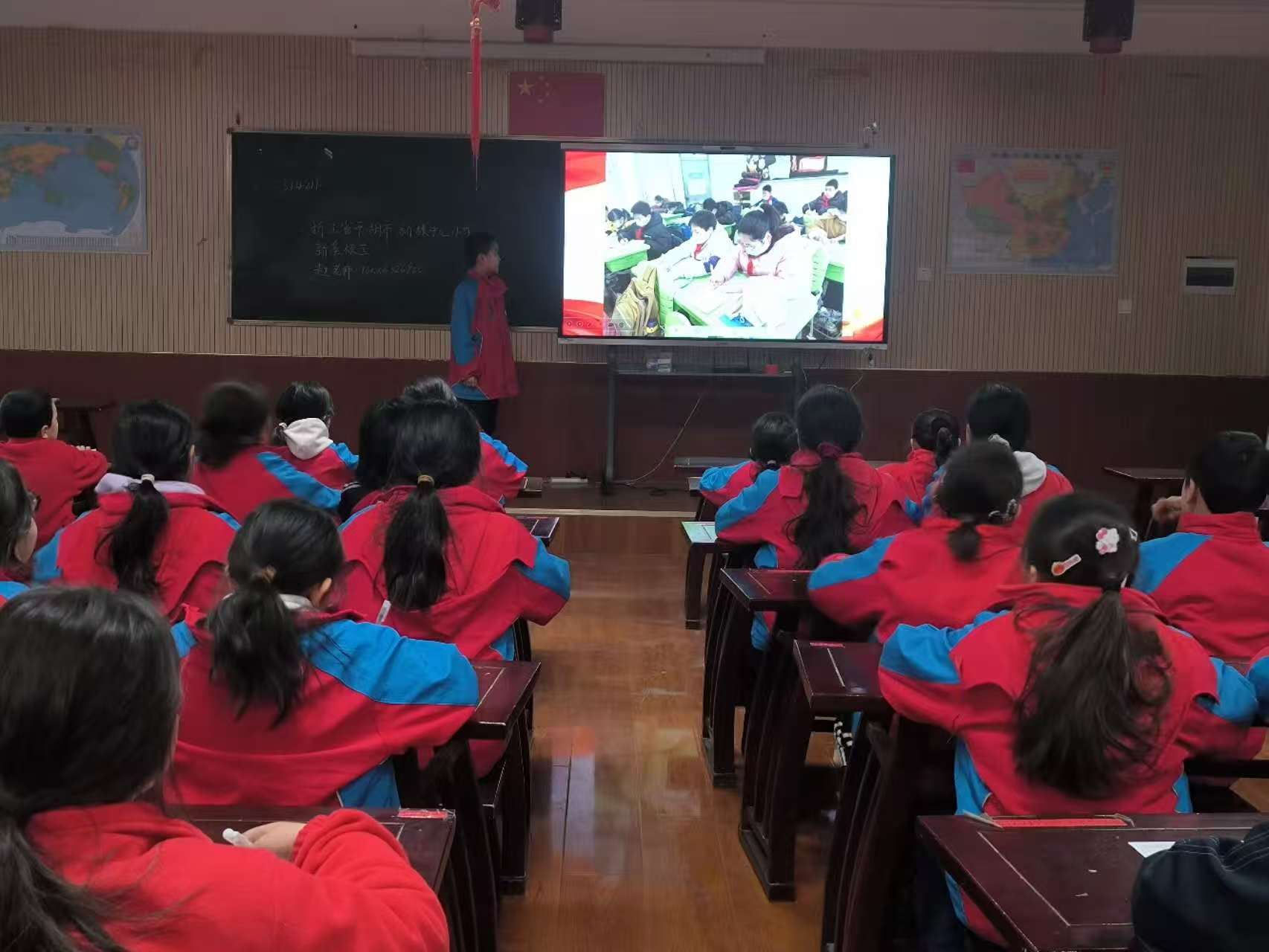 1月15日,沙雅县第五小学的学生通过“空中课堂”和浙江省平湖市新埭中心小学的学生一起学习。何成印摄