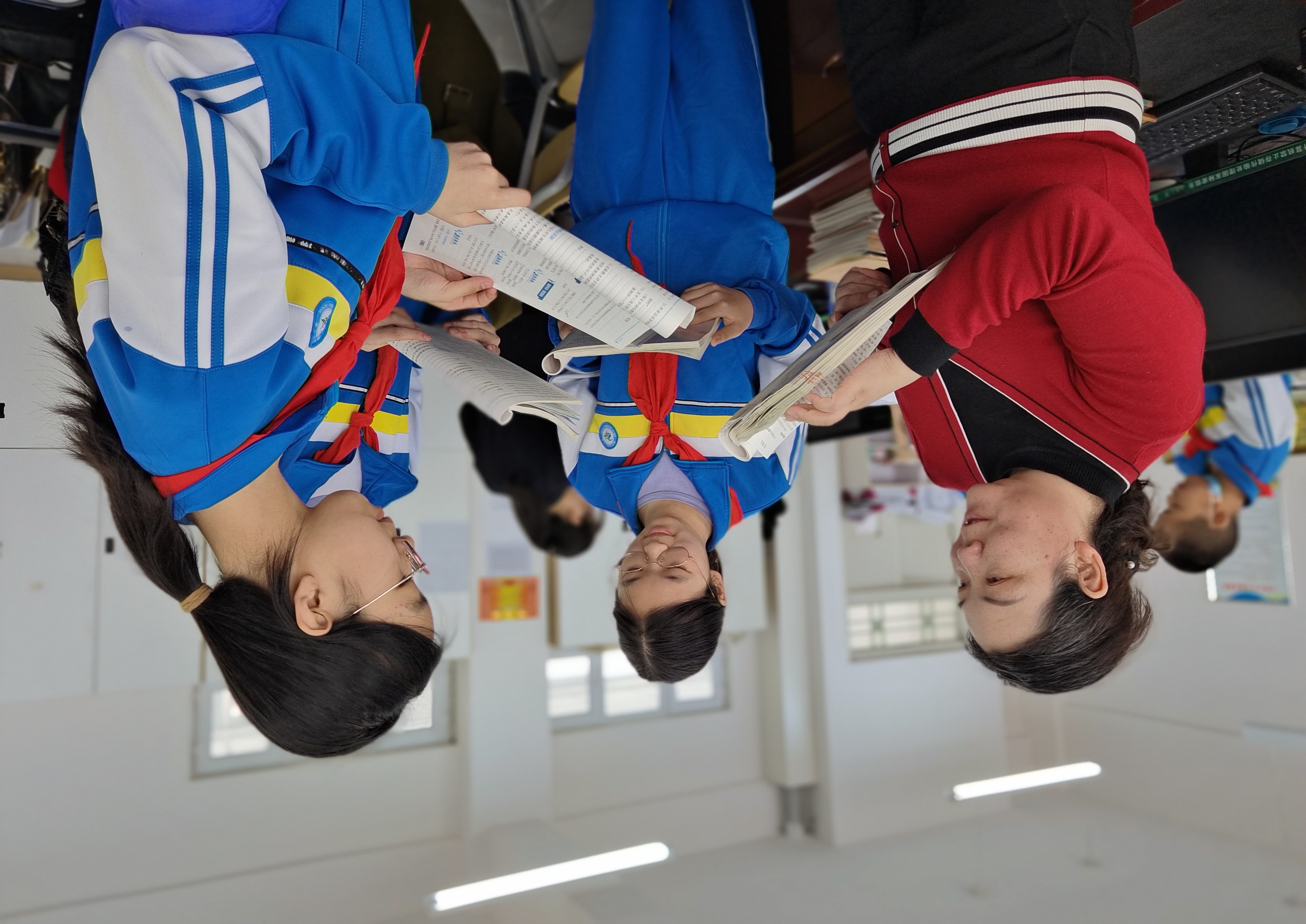 我利用午休、课间、食堂就餐等碎片时间,和学生聊诗词、谈古文,耐心解答每一名学生遇到的困惑。对取得进步的学生,我购买小零食予以奖励;班里有学生写作文困难,我利用课余时间开展义务辅导。我自费购置了打印机,方便大家随时使用。在一次次沟通与互动中,学生的语文成绩明显提升。