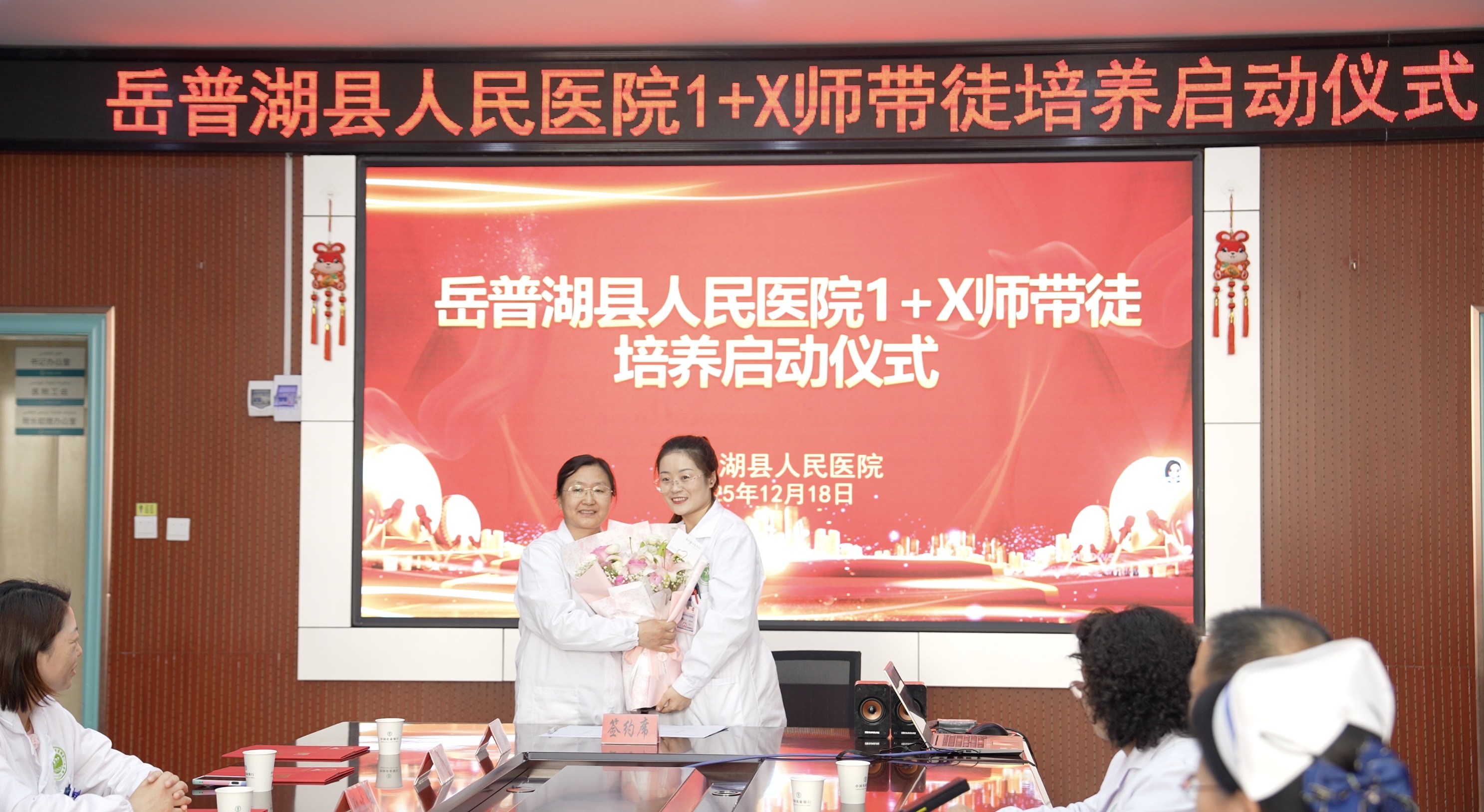 2025年12月18日,岳普湖县人民医院举行援疆医生和当地医生师徒结对仪式。山东省对口支援新疆工作指挥部供图